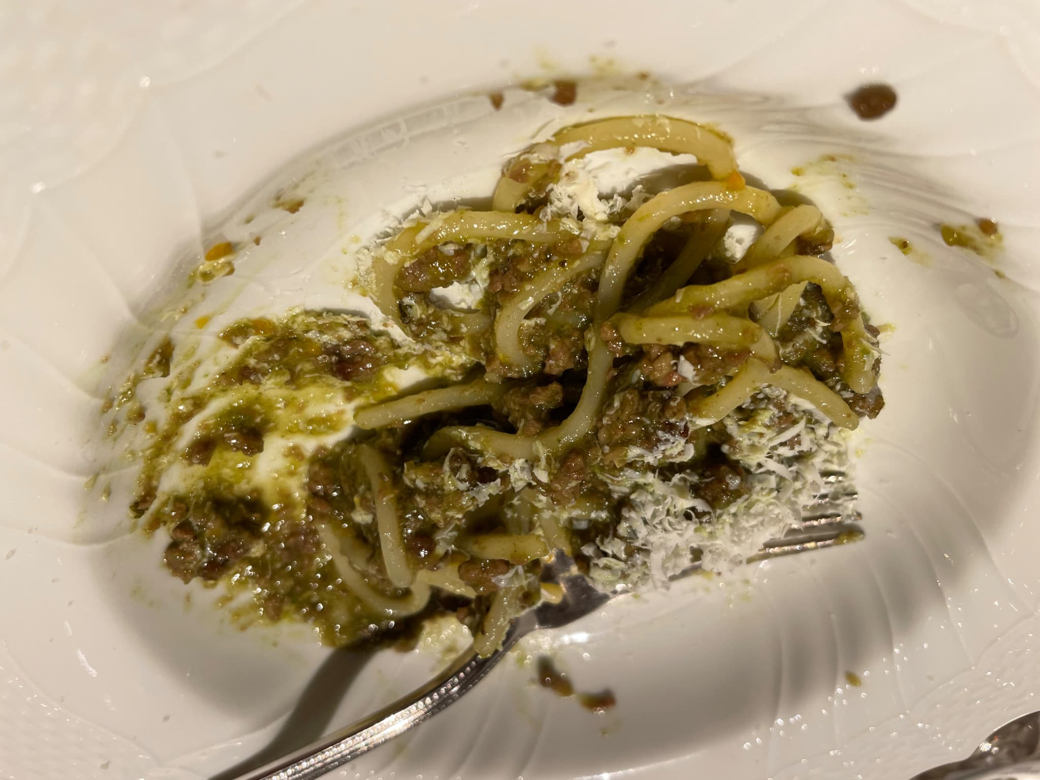 ヴェルミチェッリ 肉ラグーとピーマン